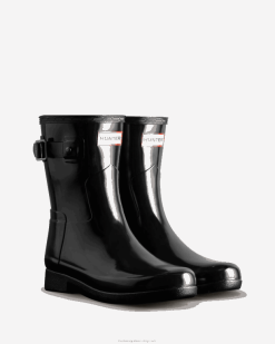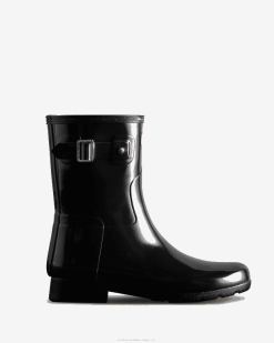 bota de lluvia refinada de ajuste delgado corta brillante negro mujer F0V4H178 Hunter