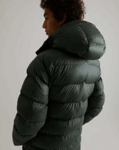 Hemos hecho dos ajustes a nuestro abrigo vegano para hombre más vendido abrigo acolchado de goma para hacerlo aún más sostenible. el aislamiento suave y acolchado está hecho de botellas de plástico recicladas y el forro está confeccionado con poliéster reciclado. con una cubierta de goma repelente al agua, este abrigo verde oscuro te mantendrá caliente en temperaturas como bajo como -25 grados centígrados (-13 Fahrenheit).