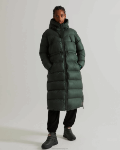 abrigo largo acolchado con aislamiento de goma verde musgo ártico mujer F0V4H369 Hunter