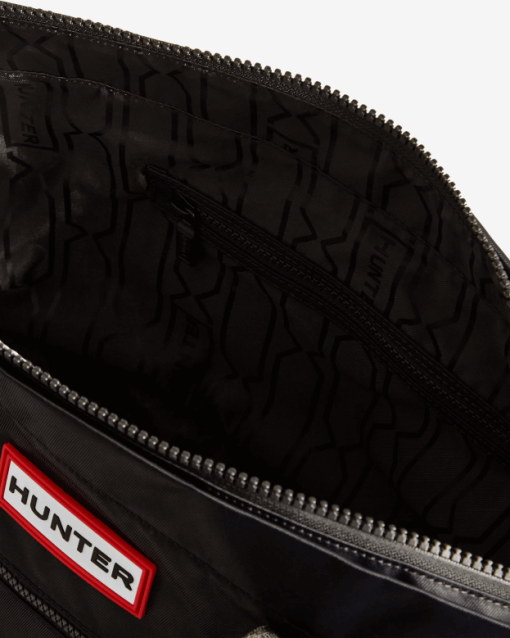 Con un forro de poliéster reciclado, un exterior resistente al agua y una base reforzada, nuestro bolso tote mediano de nylon negro con clip en la parte superior protegerá sus pertenencias, sin importar el clima. el tamaño ideal para un kit de gimnasio o comestibles, tiene una correa ajustable desmontable para que se pueda llevar de varias maneras diferentes.