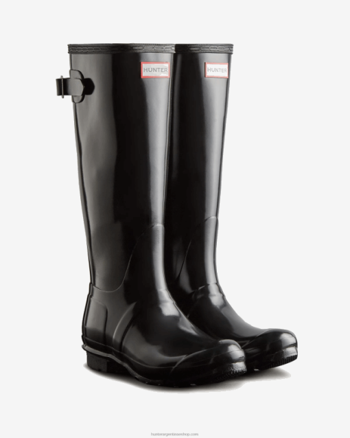 botas de lluvia brillantes ajustables con espalda alta negro mujer F0V4H62 Hunter