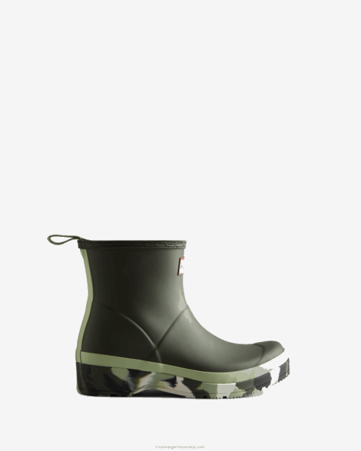 botas de lluvia cortas con suela salpicada de color oliva oscuro/verde everglade/negro/blanco sombreado mujer F0V4H52 Hunter