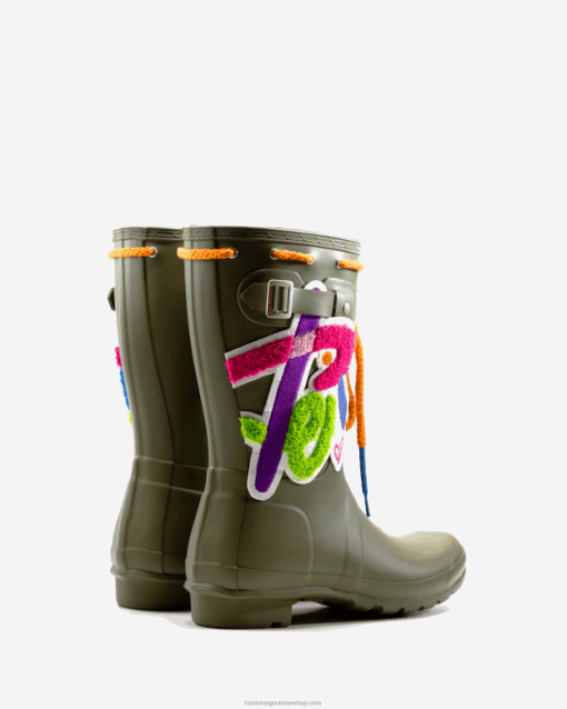 botas de lluvia cortas con correa trasera con logo tricolor liquen verde mujer F0V4H2 Hunter