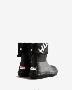botas de piel de oveja vegana con logo y parte superior enrollable sauce blanco/negro mujer F0V4H331 Hunter