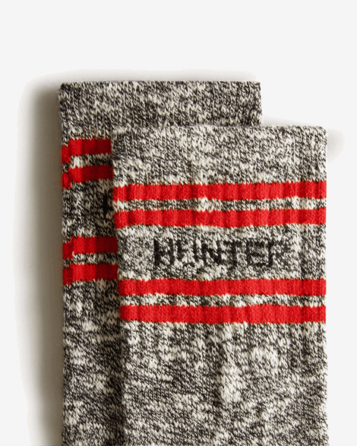 Especialmente diseñados para usarse con las botas chelsea originales, estos nuevos calcetines para botas chelsea de la marca college mouline ofrecen comodidad y apoyo en todo momento. áreas en un elegante combo negro y crema texturizado con la marca hunter en rojo y negro, serán sus calcetines favoritos para cuando use sus botas de agua. Se han introducido un talón y una puntera reforzados, lo que brinda resistencia adicional contra el adelgazamiento y la abrasión en esas áreas específicas. Estos calcetines de mezcla de algodón de peso medio, que cuentan con una costura sin costuras en la puntera y un canalé simulado por encima del tobillo, son transpirables y fáciles de usar.