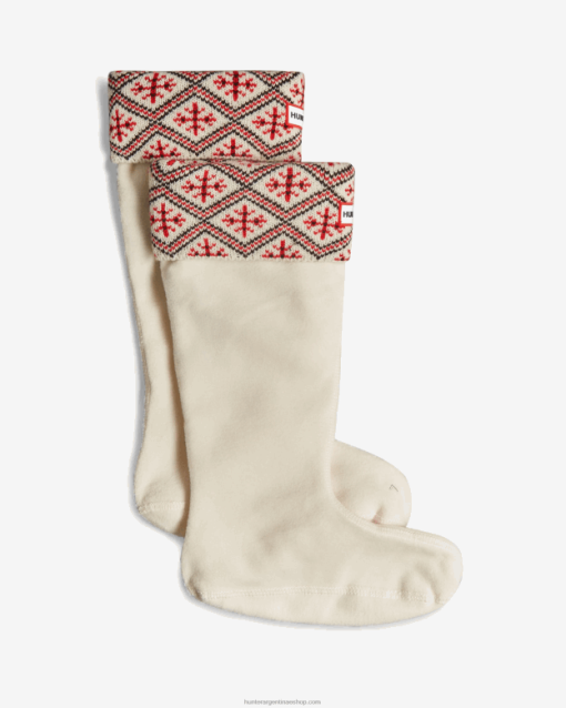 Rediseñados con forma de pie izquierdo y derecho, estos calcetines blancos para botas ofrecen el ajuste y la comodidad más mejorados y se ajustan fácilmente dentro del alto original bota de lluvia lucen el logotipo original de hunter, un puño doblado de isla justa de punto y una pernera de polar confeccionada 100 % con poliéster reciclado posconsumo.