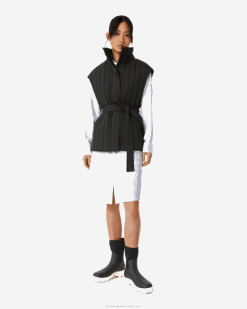 el grupo explorer presenta el chaleco acolchado explorer para mujer. Confeccionado con nailon 100 % reciclado acolchado, este chaleco negro es liviano pero protege de los elementos con sus cualidades resistentes al agua. el cuello alto proporciona un aislamiento adicional en los días ventosos y los bolsillos laterales dobles pueden contener pequeños objetos de valor. la cintura con cinturón permite un ajuste personalizado fiel a ti.