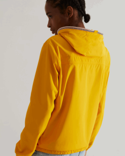 La chaqueta exterior original en amarillo brillante es plegable, resistente al agua y liviana. Cierre la cremallera, destaque y protéjase del viento. y la lluvia con esta chaqueta cortavientos confeccionada con poliéster 100 % reciclado con un revestimiento libre de carbono. Los ojales en las axilas ofrecen transpirabilidad, mientras que el dobladillo ajustable y la capucha brindan protección adicional contra los elementos. Cuando sale el sol, simplemente guárdelo en el bolso pequeño escondido en la costura del cuello.
