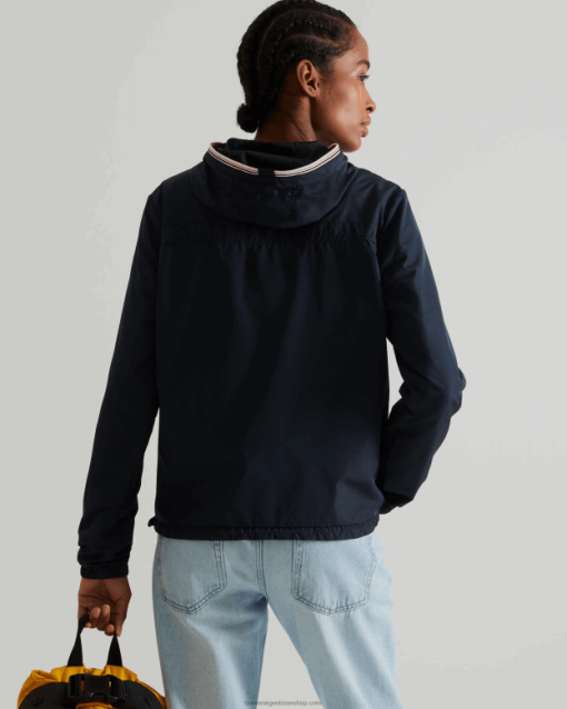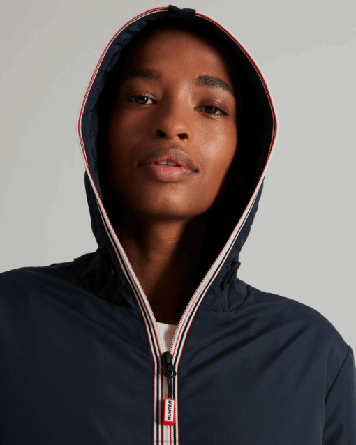 La chaqueta exterior original en un azul marino clásico es plegable, resistente al agua y liviana. Cierre la cremallera, destaque y protéjase del viento. y la lluvia con esta chaqueta cortavientos confeccionada con poliéster 100 % reciclado con un revestimiento libre de carbono. Los ojales en las axilas ofrecen transpirabilidad, mientras que el dobladillo ajustable y la capucha brindan protección adicional contra los elementos. Cuando sale el sol, simplemente guárdelo en el bolso pequeño escondido en la costura del cuello.