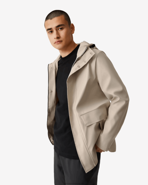Diseñado para el uso diario en temporadas de transición, el chubasquero es la máxima protección contra las inclemencias del tiempo e impredecibles. esta chaqueta beige totalmente impermeable cuenta con una construcción de costuras soldadas y cierre de solapa de tormenta para una protección superior. elaborado con ojales en las axilas, el forro de malla completa ofrece mayor transpirabilidad.
