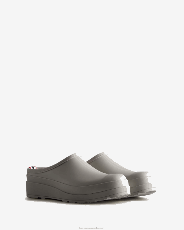 El zueco de juego para mujer sin cordones está hecho de caucho natural de la más alta calidad y se coloca sobre una suela plana con plataforma con un Forro y plantilla renovados 100% poliéster reciclado. el zueco 100% impermeable está diseñado con más de 160 años de inteligencia para todo clima de hunter. evocador de la bota de juego más vendida, este zueco de agua gris claro con acabado mate presenta una silueta aerodinámica y se puede usar en interiores para una fácil protección o al aire libre como un calzado sin cordones de verano en los meses más cálidos