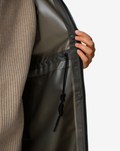 La parka transparente Play es totalmente impermeable con una construcción de costuras soldadas y bolsillos de entrada invertida lista para aguaceros más fuertes. esta elegante parka de gran tamaño se puede adaptar para adaptarse con un canal de cordón en la cintura y puños ajustables. para la ventilación en los días más cálidos, el abrigo está equipado con ojales en las axilas.