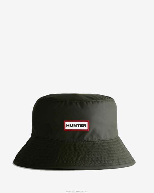 Con una capa de goma, el sombrero de pescador verde para la lluvia es un accesorio para todos los días. declaración de estilo para trajes de clima húmedo. la cubierta de poliéster 100 % reciclado tiene un recubrimiento liviano resistente al agua para protección, mientras que el llamativo logotipo de Hunter agrega impacto a cualquier look.