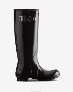 botas de lluvia altas con correa trasera con logo tricolor negro mujer F0V4H8 Hunter